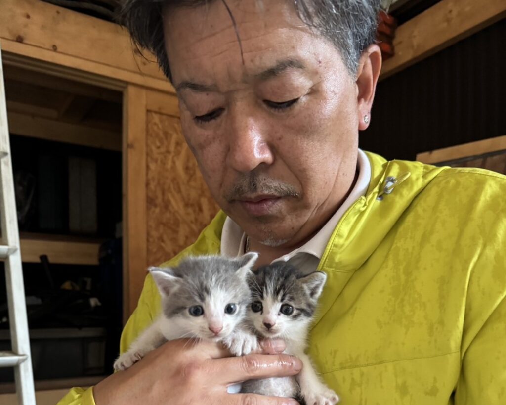 社長にさえなかなか懐かなかった猫のツナちゃん、可愛い子猫を二匹連れてきました。とっても可愛い仔たちです