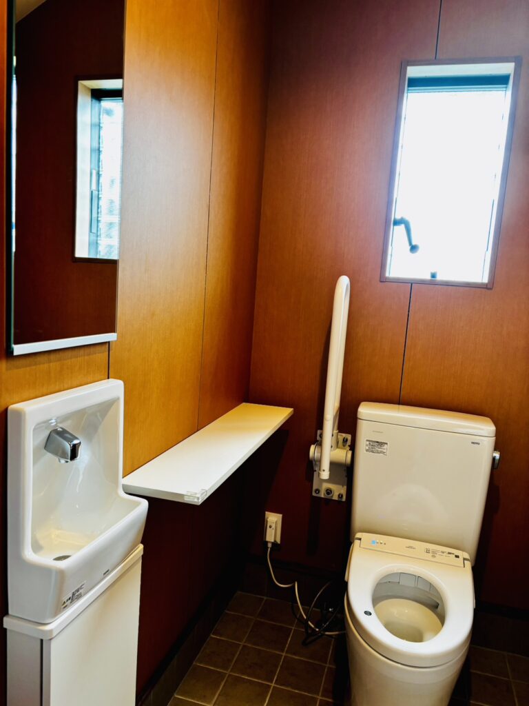 - 車イスの人やお年寄り、赤ちゃんを連れた人など、色々な人が使いやすいトイレを新しく作りました。